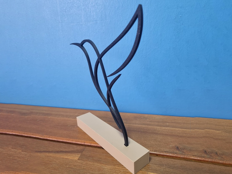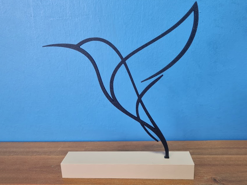 Add a touch of elegance and modern style to your space with this minimalist hummingbird sculpture. Designed with smooth flowing lines and a balanced silhouette, this piece captures the beauty and motion of a hummingbird in flight.