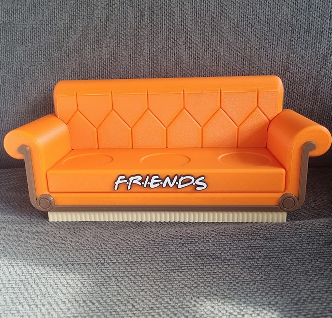 Αυτό το λεπτομερές 3D εκτυπώσιμο μοντέλο βασίζεται στον διάσημο πορτοκαλί καναπέ του Central Perk, του θρυλικού καφέ όπου οι Ross, Rachel, Monica, Chandler, Joey και Phoebe μοιράστηκαν αμέτρητα γέλια. Εκτυπώσαμε σε 3D τον εμβληματικό καναπέ, τέλεια κλιμακωμένο για τα νέα συλλεκτικά McDo. Τώρα οι mini-Ross, mini-Rachel και mini-Chandler έχουν το ιδανικό μέρος για να καθίσουν.